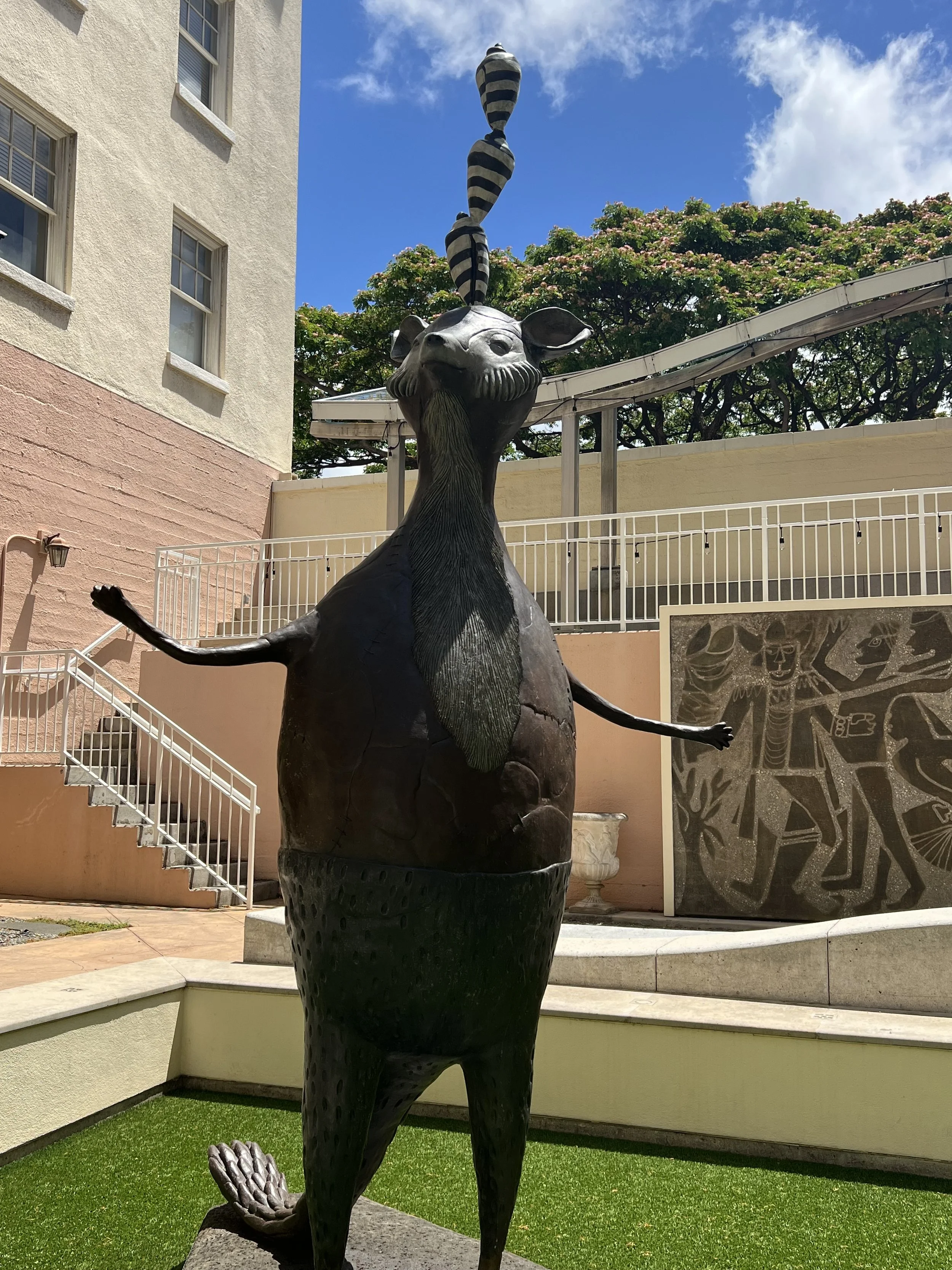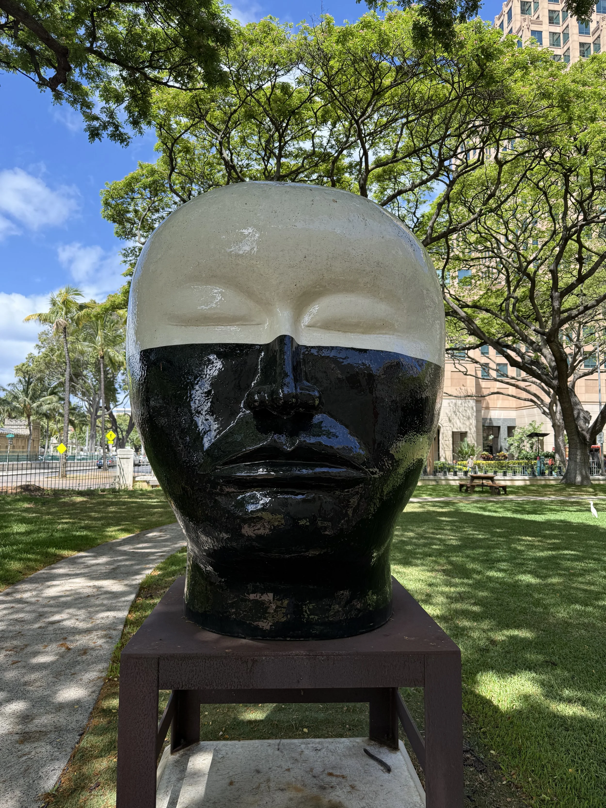 Instead, I found contemporary Hawaiian art, a colorful sculpture garden designed to mimic an elegantly landscaped pool, emotionally moving pieces that healed parts of my soul, and then….
