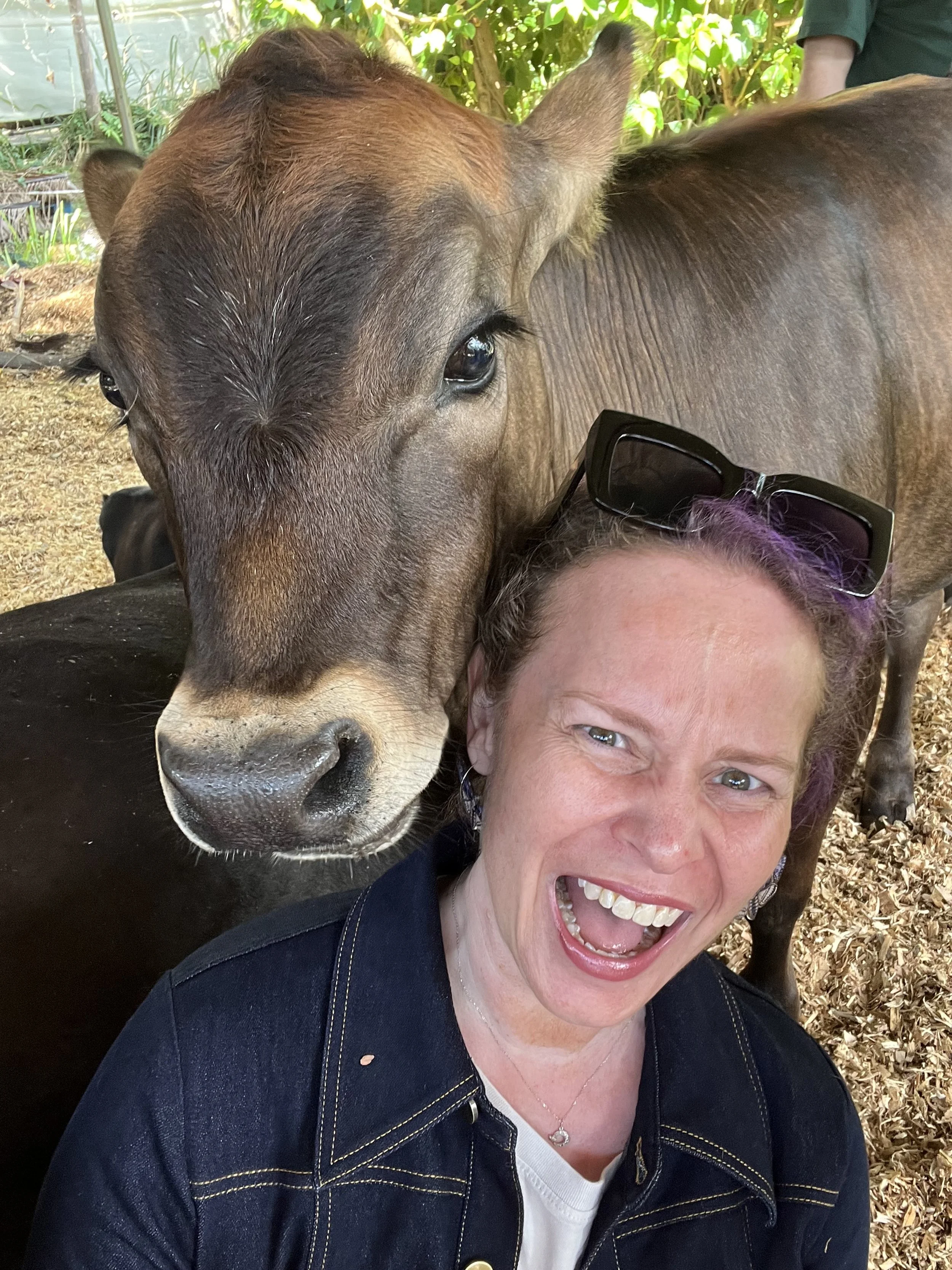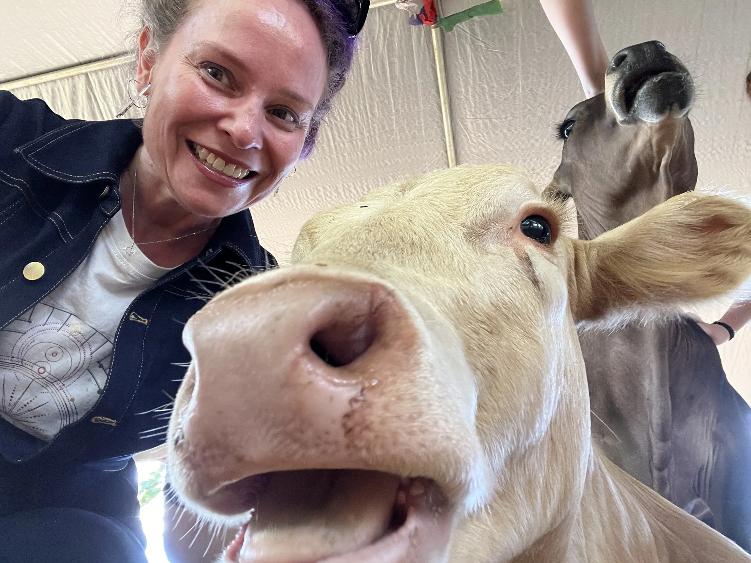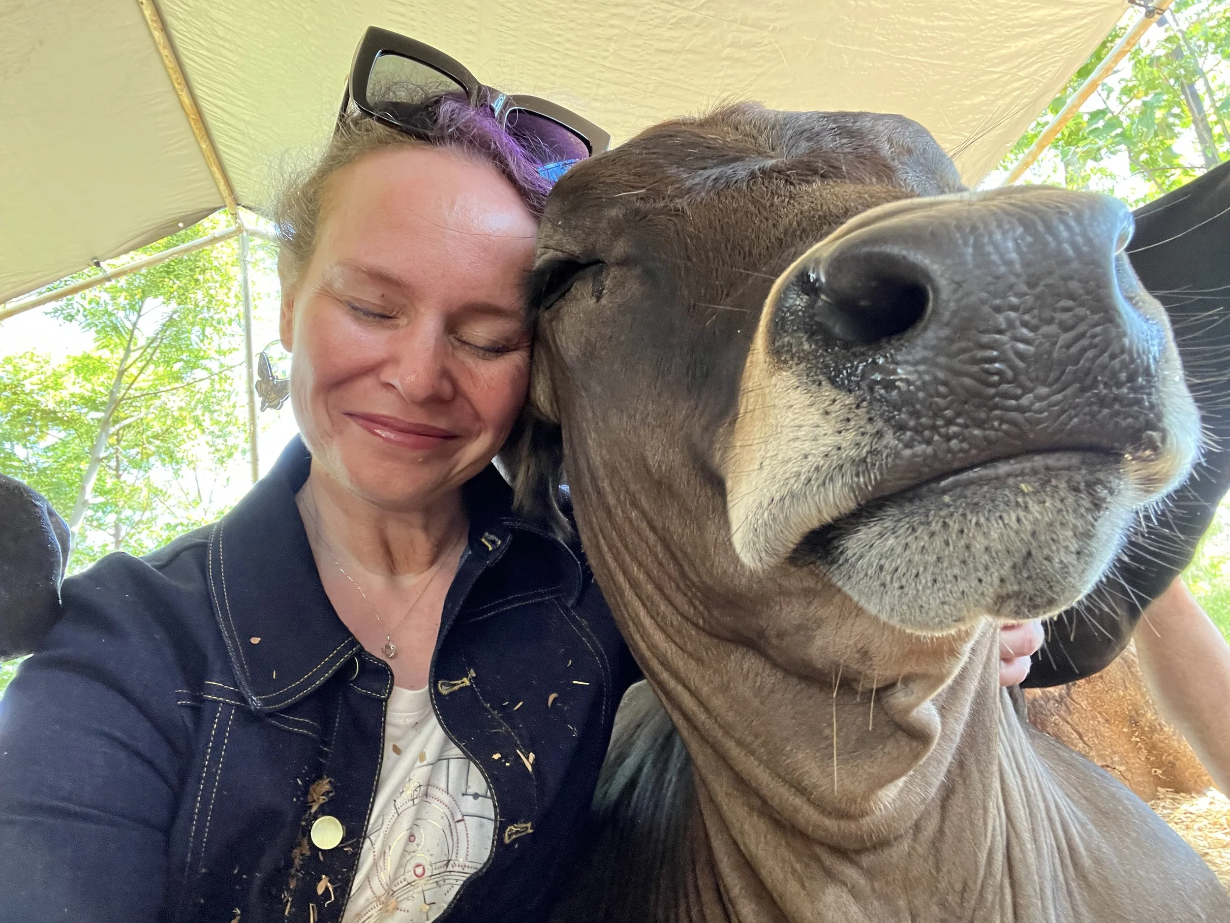 That’s basically what happened to me. One minute I’m hugging a cow, the next I’m fully emotionally entangled with the matriarch of the herd, quietly weeping into her side. It’s fine. I’m fine. This is all fine.