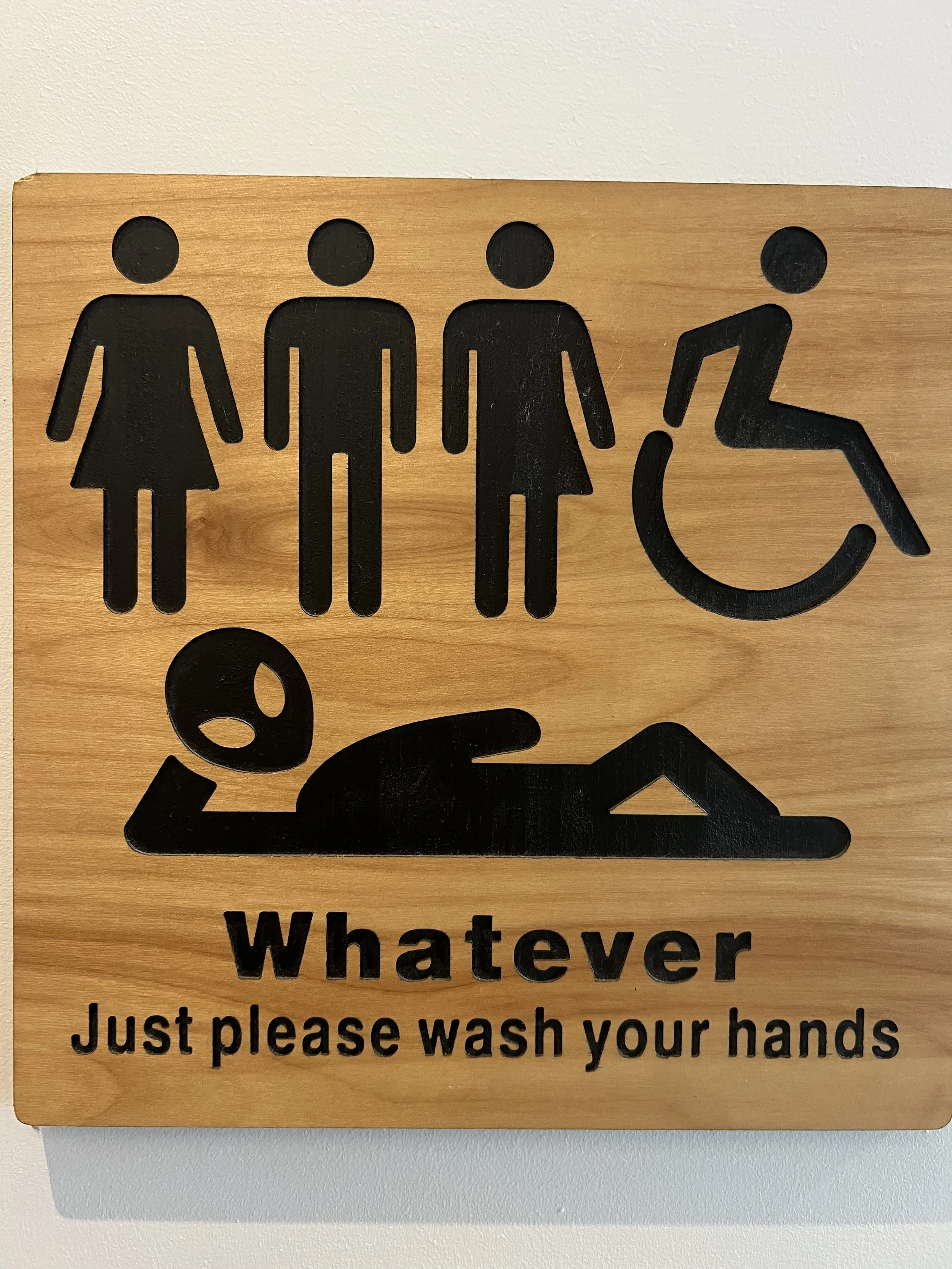 It’s the kind of place I wish existed in my neighborhood: welcoming, whimsical, and just a little bit magical. On the way out, I smiled at the subtle signals of queer belonging—Subarus with rainbow bumper stickers flanking my car, and a bathroom sign that offered quiet, inclusive warmth with a nod to the trans community.